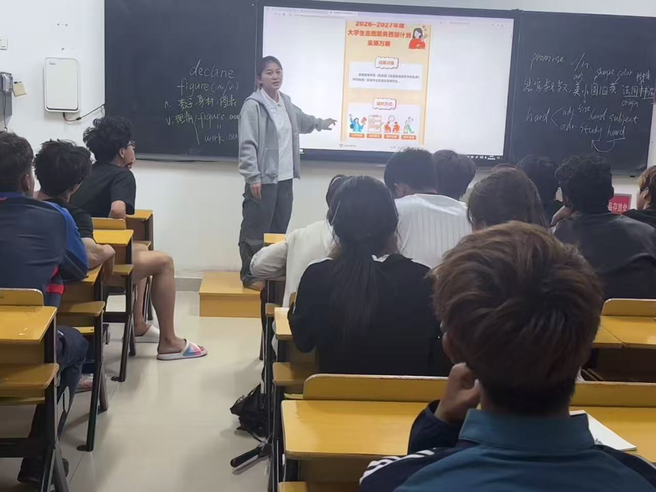 同时,各班级同步开展西部计划宣讲主题班会。各班结合青年成长实际,组织同学们学习政策文件、分享优秀志愿者故事,围绕基层服务、青春奋斗、职业规划等话题展开讨论,引导大家立足时代需求,跳出舒适圈,把个人成长与国家发展紧密结合,在服务奉献中锤炼本领、实现价值。同学们积极交流想法,不少同学表示愿意主动了解相关政策,认真规划未来发展方向。